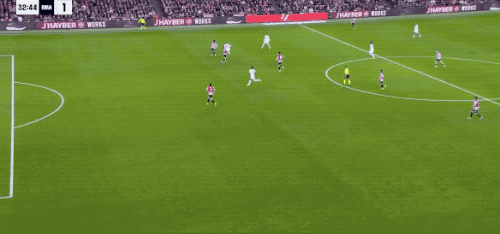 面对着毕尔巴鄂的高位逼抢,皇马的战术相当奏效,那就是找准时机,送出准确的长传。